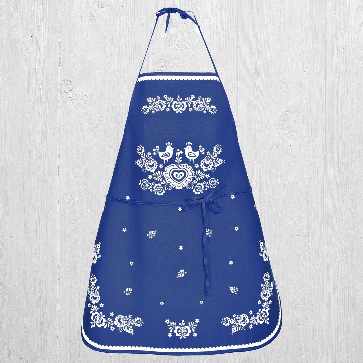 Zástěra kuchyňská, Folk podklad modrý
