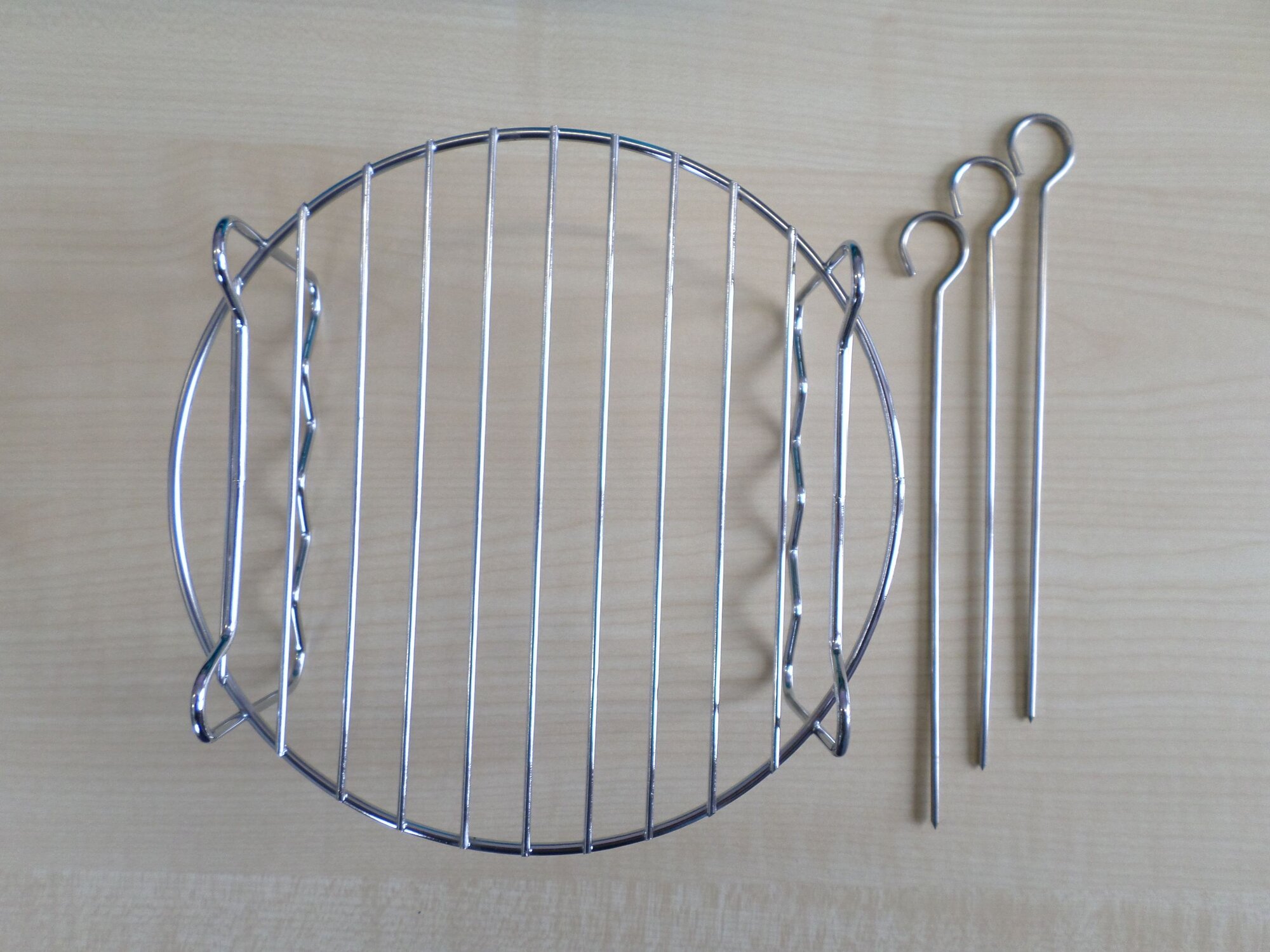 Wymiary rusztu (średnica x wysokość): 18,5 x 2,8 (4,8) cm Długość szpikulca do grillowania: 15,5 cm (bez zaokrąglonego końca) Powłoka powierzchniowa: chrom
