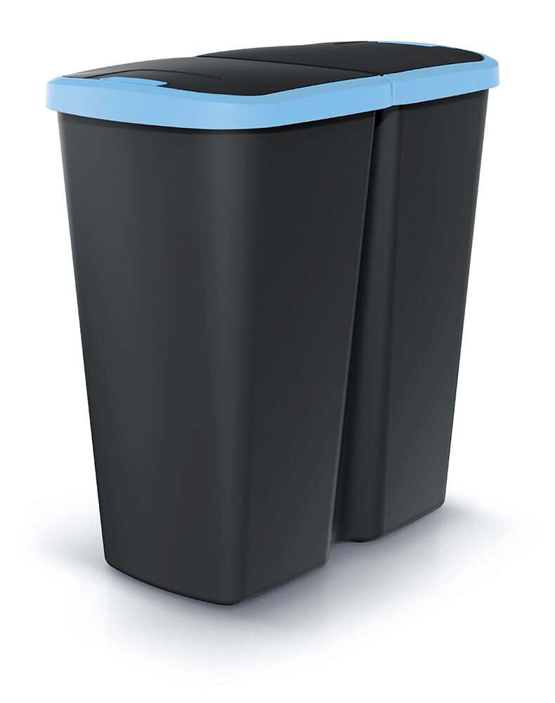 Odpadkový koš COMPACTA Q DUO - objem: 45 l, barva: černá se světle modrým víkem