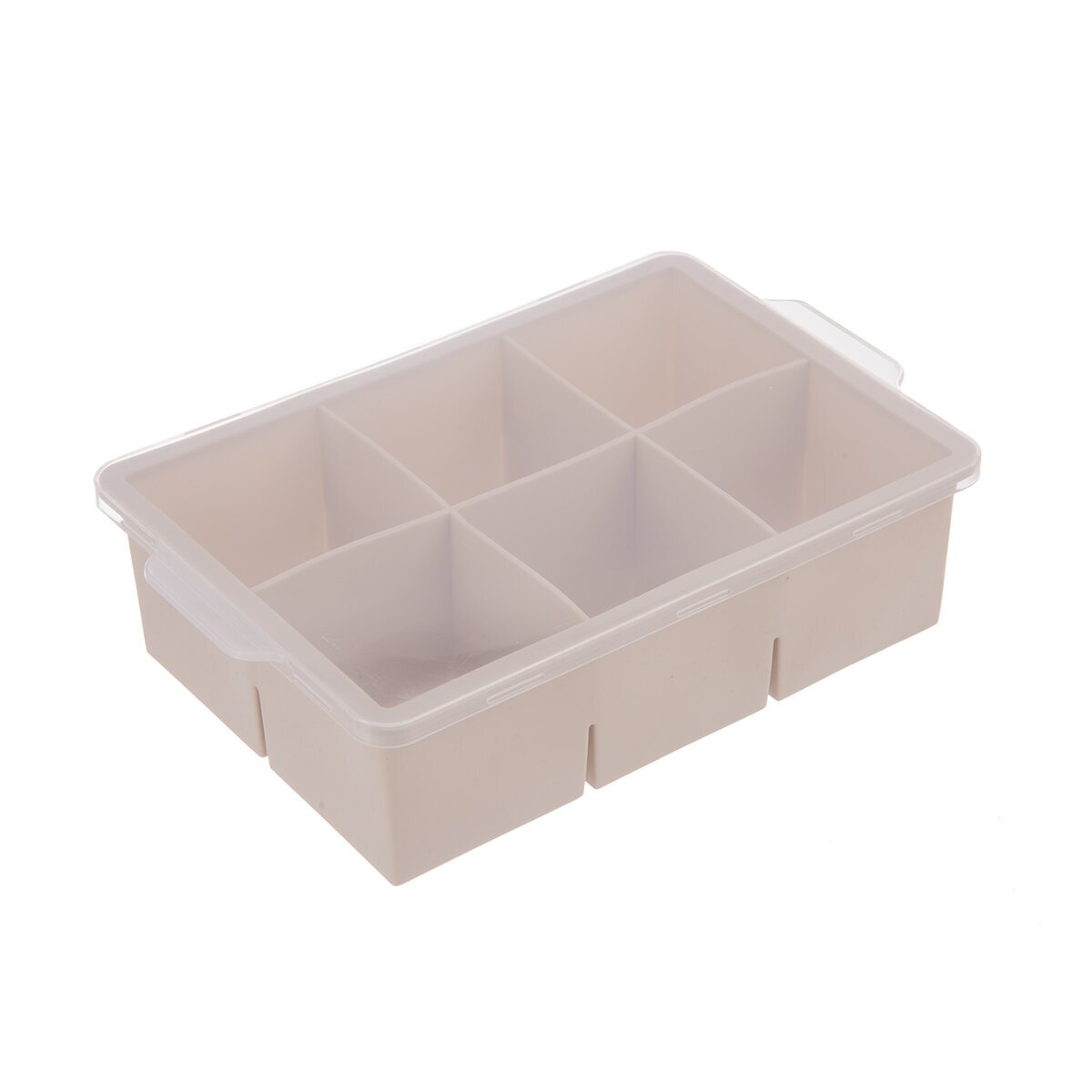 Forma na lód z przezroczystą pokrywką tworzy duże kostki lodu (6 kostek), które nadają się do dzbanów lub pojemników z kranikiem. Oprócz klasycznych kostek lodu można przygotować także kostki z kawałkami owoców. Forma równie dobrze nadaje się do zamrażania startej lub zmiksowanej warzyw, bulionu, ziół (pesto), pokarmów dla dzieci... Dzięki elastyczności materiału kostki lodu po zamrożeniu łatwo wyjąć z formy. Materiał: termoplastyczna guma TPE, plastik PP (pokrywka). Wymiary: 18,5x12x5 cm, jedna kostka 5x5x4,5 cm. Można myć w zmywarce.