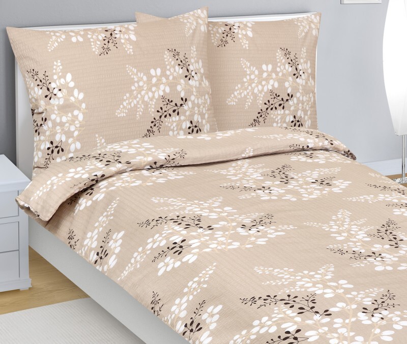 Povlečení krepové - Béžová,Hnědá,Bílá - 140x200, 70x90 cm
