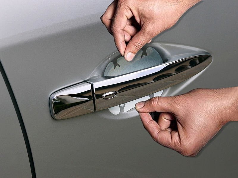 Przezroczysta folia ochronna chroniąca lakier przed zarysowaniami pod klamkami samochodu, marki Avisa.