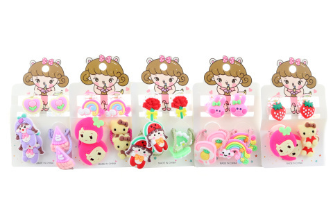 Doplňky do vlasů pro malé parádnice. Sada vždy obsahuje 2 gumičky a 2 skřipečky s různými motivy. Materiál plast. Baleno v sáčku. Rozměry balení 9x14x1 cm. Výrobek není hračka. przeczytaj całość