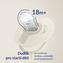 Dzięki unikalnej konstrukcji z silikonu o różnej grubości dynamiczny smoczek rozciąga się i kurczy zgodnie z rytmem ssania dziecka. Chroni to odruch ssania i nie wpływa niekorzystnie na karmienie piersią. Symetryczny kształt końcówki nawiązuje do kształtu wypełnionej mlekiem piersi, co daje maluszkowi znane uczucie podobne do karmienia piersią.