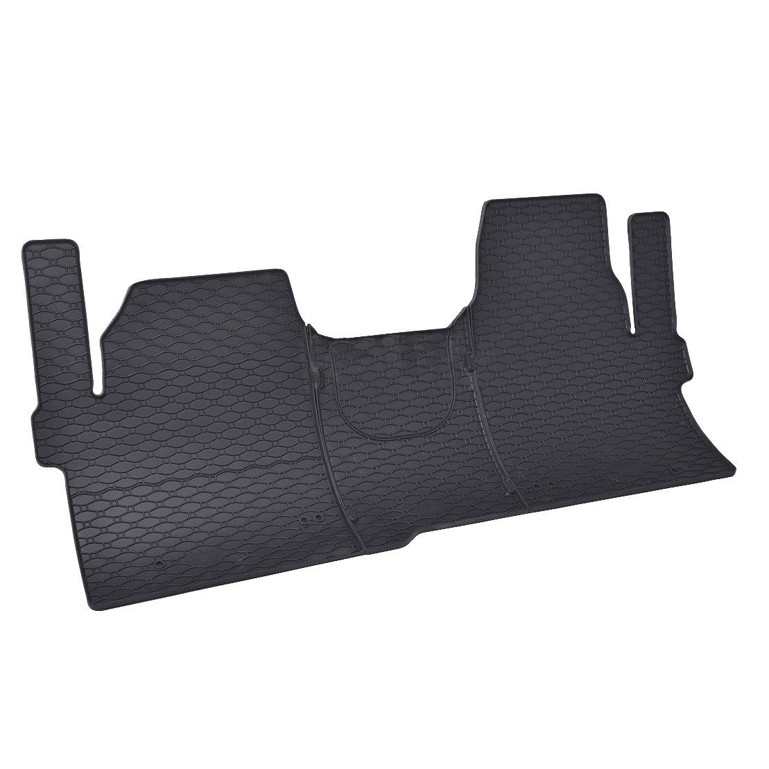 Kvalitní gumové autokoberce pro vůz VW Transporter T7. Autokoberce mají tradiční (čtverčkovaný) design, díky kterému nedochází k přelévání vody, popř. tajícího sněhu po kobercích. Okraj autokoberců je přibližně 1 cm vysoký.