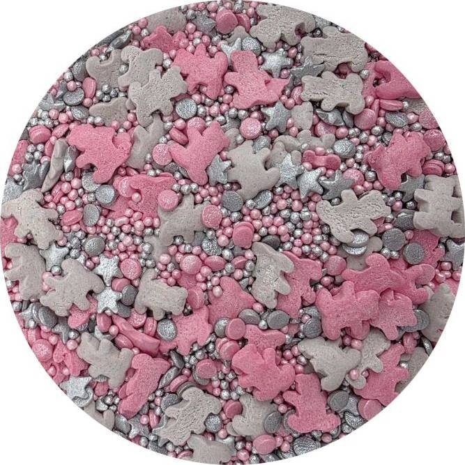 Cukrové zdobení růžovo-stříbrní medvídci. Balení 80 g. przeczytaj całość