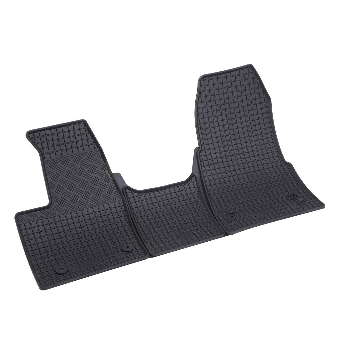 Kvalitní gumové autokoberce do přední řady pro vůz Ford Transit / Tourneo Custom, který se vyrábí od roku 2018. Autokoberce mají tradiční (čtverčkovaný) design, díky kterému nedochází k přelévání vody, popř. tajícího sněhu po kobercích. Okraj autokoberců je přibližně 1 cm vysoký.