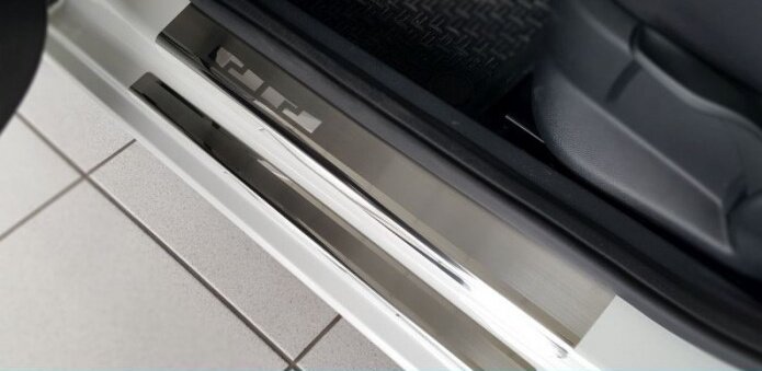 Prahové lišty vozu Škoda Fabia jsou vyrobené z nerezové oceli. Lišty jsou odolné proti veškerým povětrnostním vlivům i vlhkosti. Spolehlivě chrání před poškrábáním a mechanickým poškozením, které vzniká používáním automobilu.Montáž prahových lišty se provádí lepením pomocí oboustranné lepicí...
