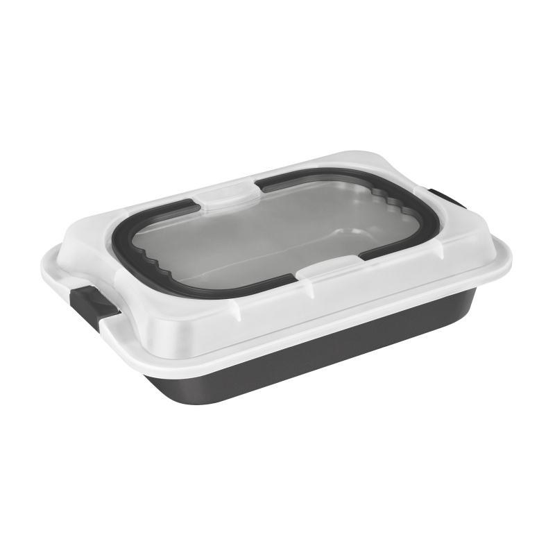 Dopřejte si pohodlné a efektivní pečení s přenosným plechem na pečení s víkem z kolekce Antracit Collection. Ideální pro každodenní použití i speciální kulinářské projekty – praktický, odolný a ekologicky šetrný.Technické parametry:• Materiál: uhlíková ocel s nepřilnavým povrchem TitanPro,...
