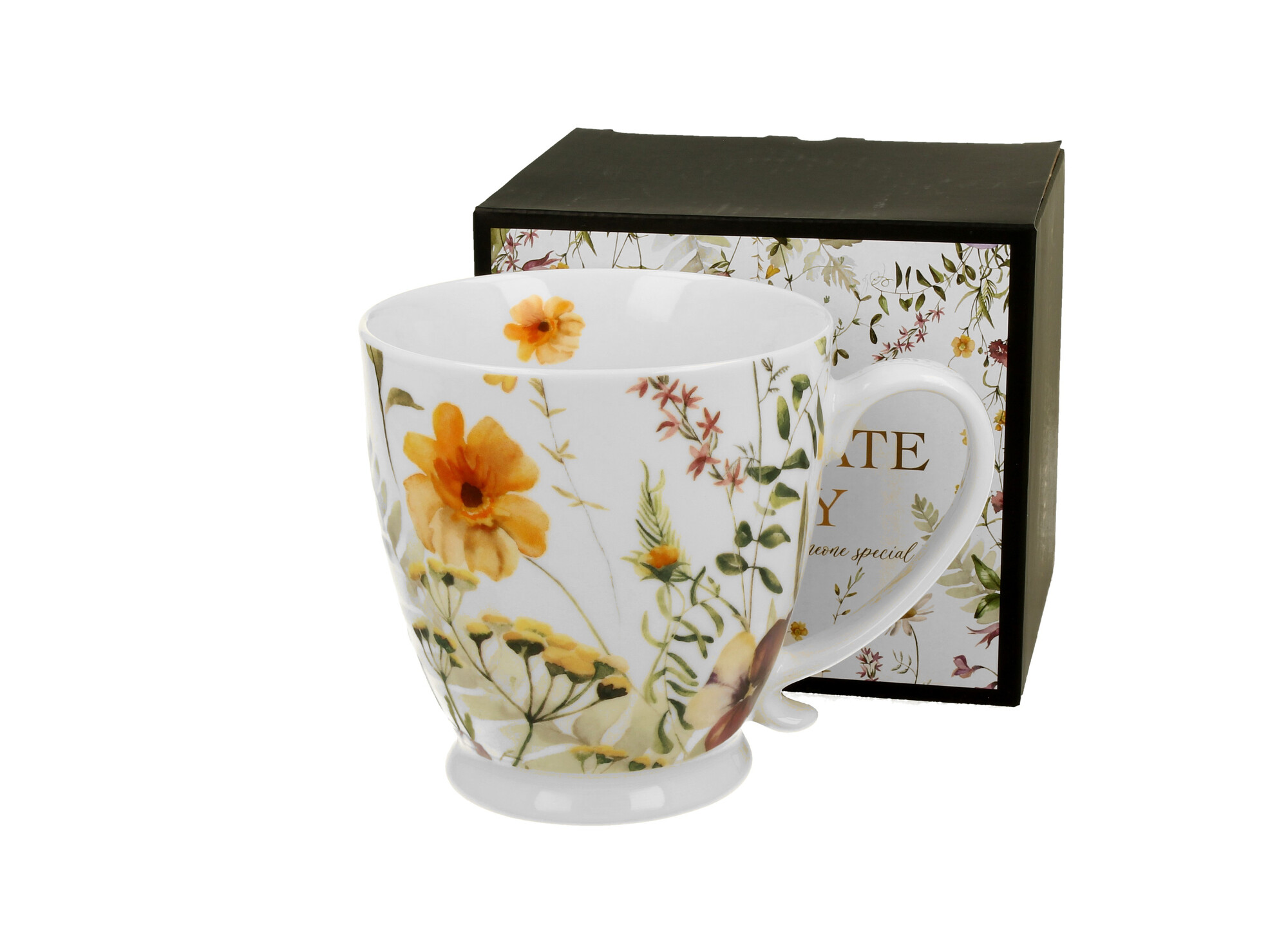 Kubek na stopce PANSY wchodzący w skład serii Kwiaty Royal, wykonany z porcelany New Bone China, charakteryzującej się elegancką i naturalną kremowo - białą barwą z delikatnym połyskiem, a także wyjątkową wytrzymałością.Linia zdobiona delikatnym motywem inspirowanym naturą – gałązkami różnych...