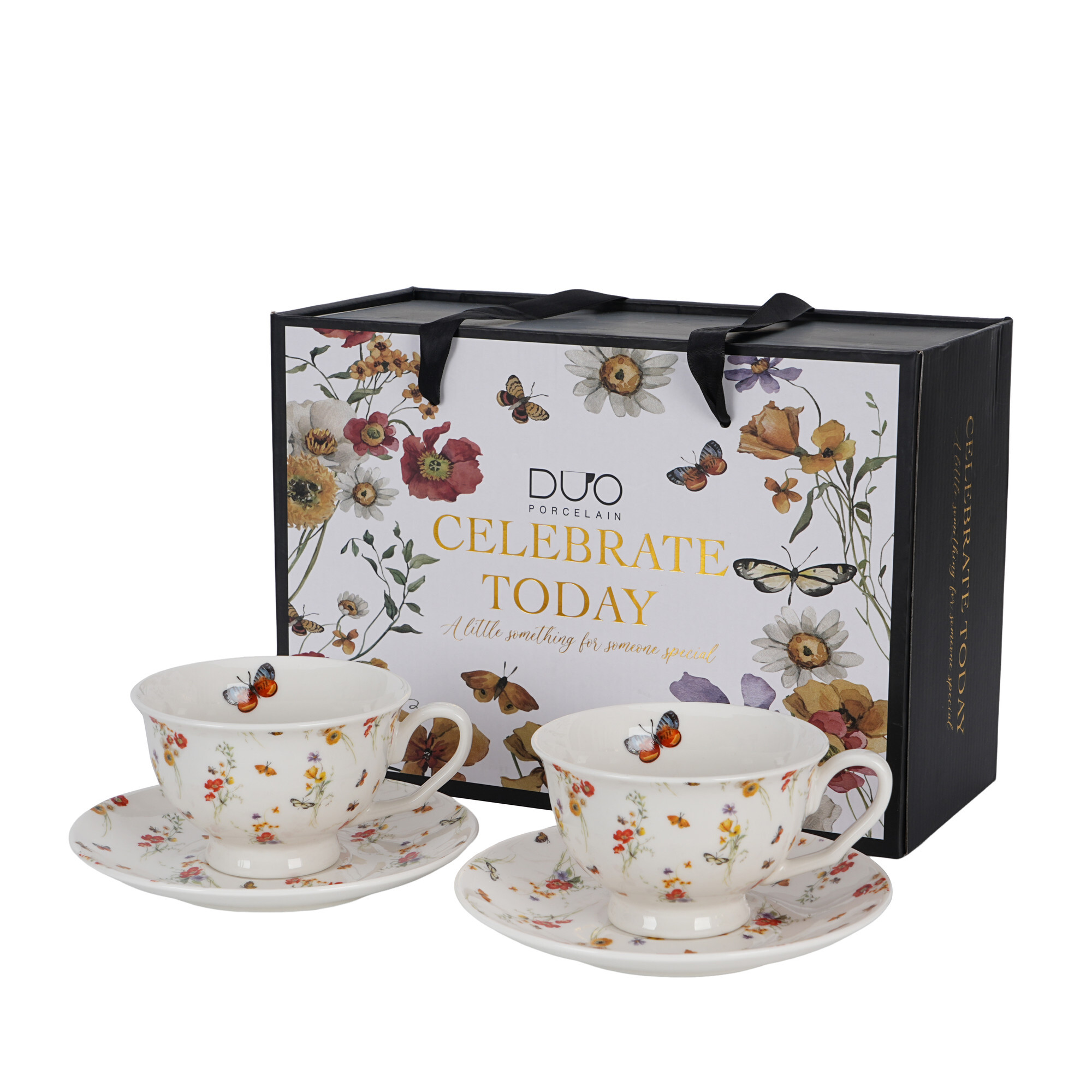 Komplet dwóch filiżanek royal ze spodkami GRACE wchodząca w skład serii Kwiaty Royal, wykonany z porcelany New Bone China, charakteryzującej się elegancką i naturalną kremowo - białą barwą z delikatnym połyskiem, a także wyjątkową wytrzymałością.Linia zdobiona wyjątkowym motyw inspirowany naturą...