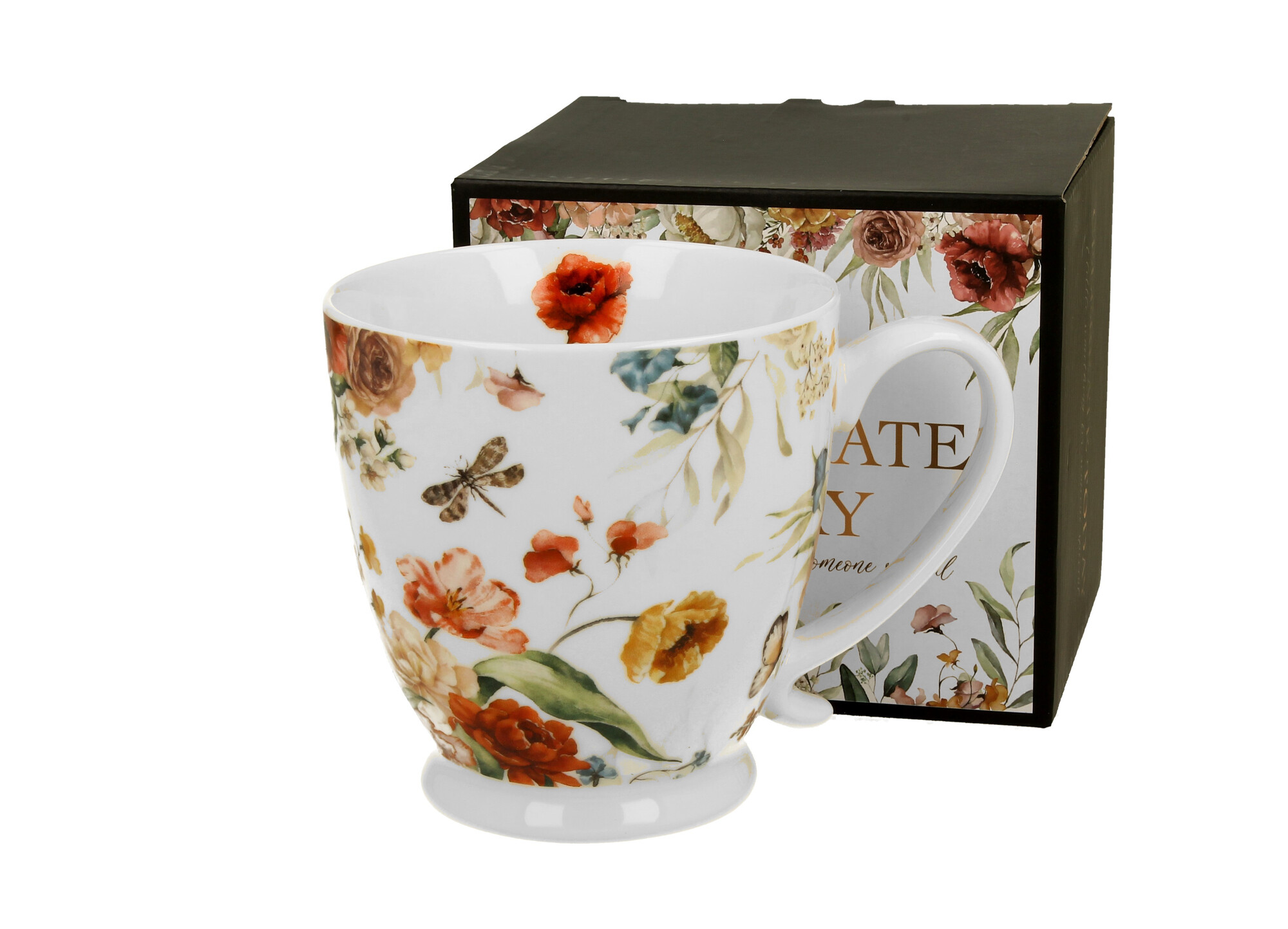 Kubek na stopce REBECCA wchodzący w skład serii Kwiaty Royal, wykonany z porcelany New Bone China, charakteryzującej się elegancką i naturalną kremowo - białą barwą z delikatnym połyskiem, a także wyjątkową wytrzymałością.Linia zdobiona unikalny motyw inspirowany naturą - elegancka ważka,...