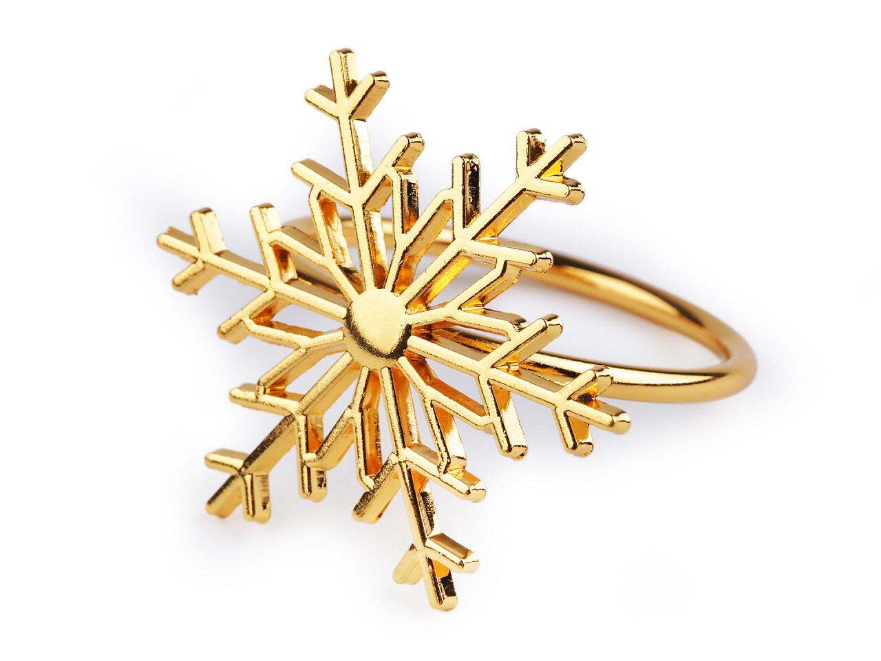 Kovový kroužek na ubrousek vánoční vločka - 1 ks - 2 zlatá