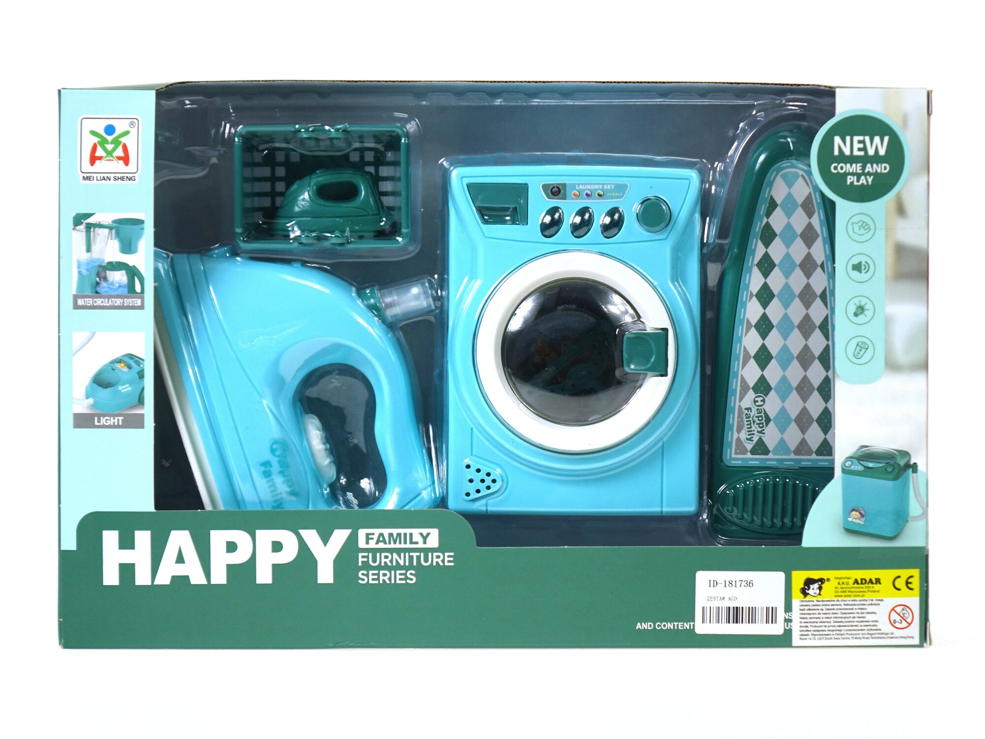 Sada - pračka, žehlička, na baterie, žehlící prkno, 34x22x9,5cm, W/B. 4x1,5V AA (nejsou součástí) przeczytaj całość
