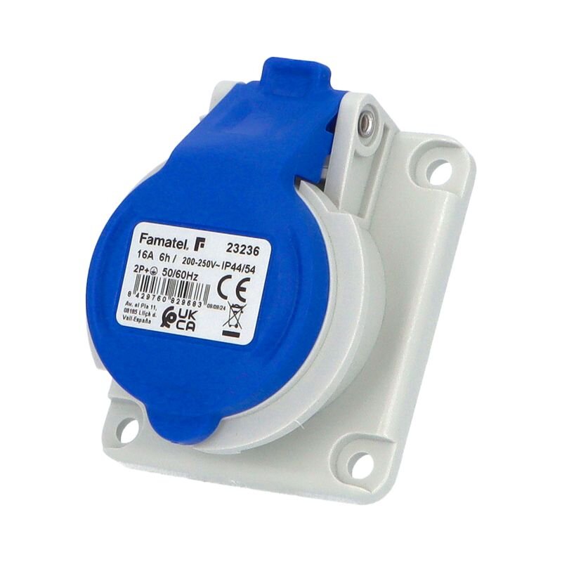 Průmyslová zásuvka 23236 splňuje požadavky norem IEC/CEI/EN 60309-1, IEC/CEI/EN 60309-2. Zásuvka vestavná 23236 IP44-54/230V/16A/3P 6h, šikmá 10° - SpeedPRO. Příruba 64x74 mm. przeczytaj całość