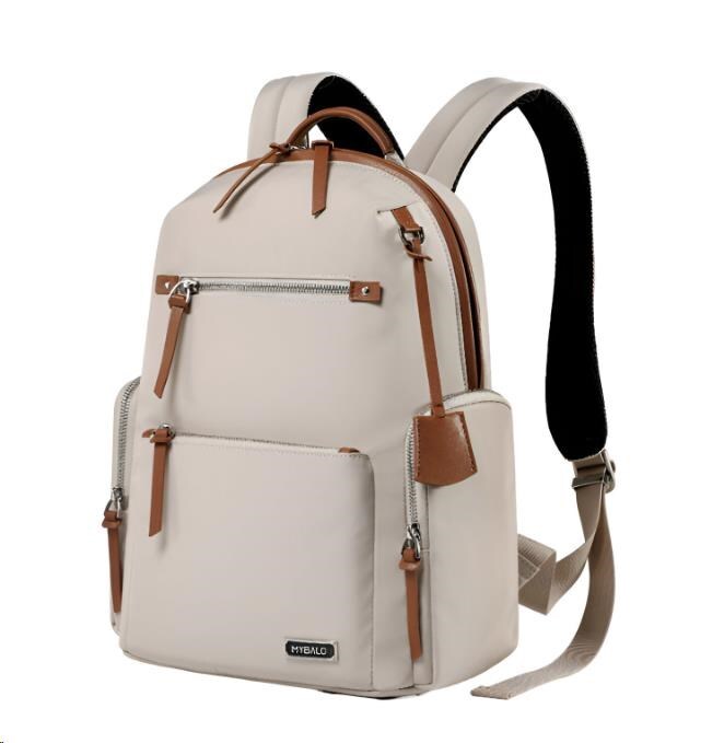 MYBALO ZOEY Menší dámský batůžek do města i na výlet - Elegantní - Skrytá kapsa - Prostor na laptop do 14" - Kapsa na láhev - Voděodolný - Do letadla Dvě barevné varianty Batůžek je dostupný ve dvou barevných variantách: béžové s hnědými detaily a černé, univerzální k různému oblečení....