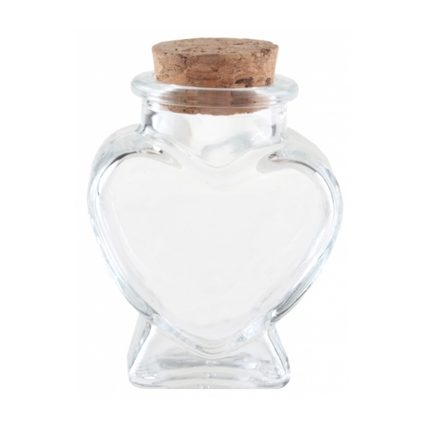 Ta urocza szklana buteleczka w kształcie serca z naturalnym korkowym zamknięciem to doskonały dodatek do romantycznych i ślubnych dekoracji. Możesz użyć jej jako stylowego opakowania na migdały ślubne, drobne słodycze lub osobiste wiadomości dla gości. Świetnie nadaje się także do tworzenia upominków lub jako element dekoracji w stylu rustykalnym czy vintage. Buteleczka wykonana jest z przezroczystego szkła i jest wystarczająco wytrzymała. Można ją dowolnie ozdobić kokardą, etykietą lub zawieszką z imieniem. Dzięki swojemu kształtowi ucieszy nie tylko na weselach, ale także na Walentynki czy rocznice. Techniczne parametry: Materiał: szkło, korek Rozmiary: 5,5 × 4 × 7 cm Kolor: przezroczysty Opakowanie: 1 szt.