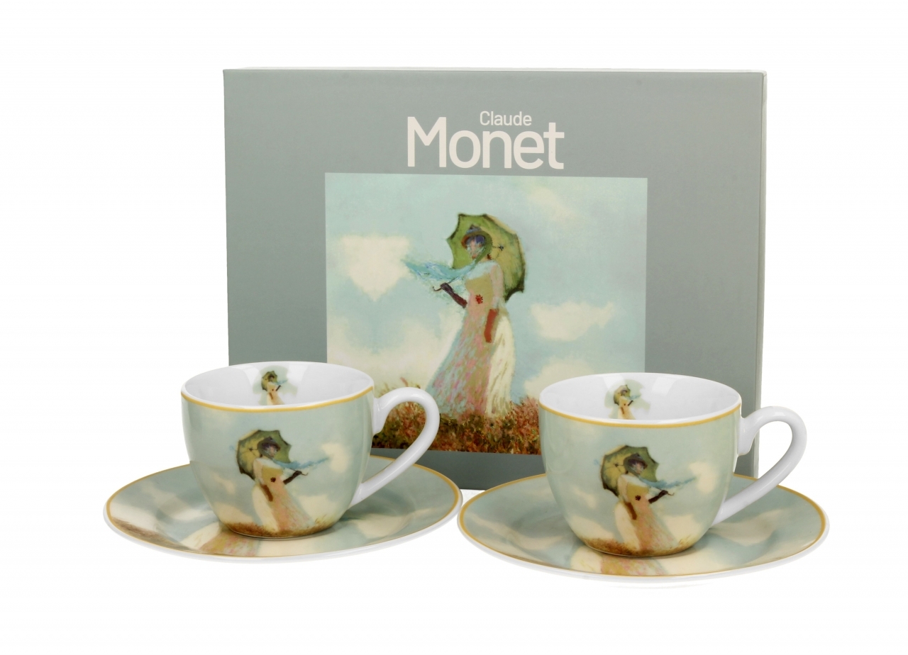 Dva espressové šálky s podšálky WOMAN WITH PARASOL inspirované C. Monetem, součást série Art Gallery, vyrobené z porcelánu New Bone China, vyznačující se elegantní a přírodní krémově bílou barvou s jemným leskem a zároveň výjimečnou odolností při zachování lehkosti a jemnosti.Vyrobeno z bílého...