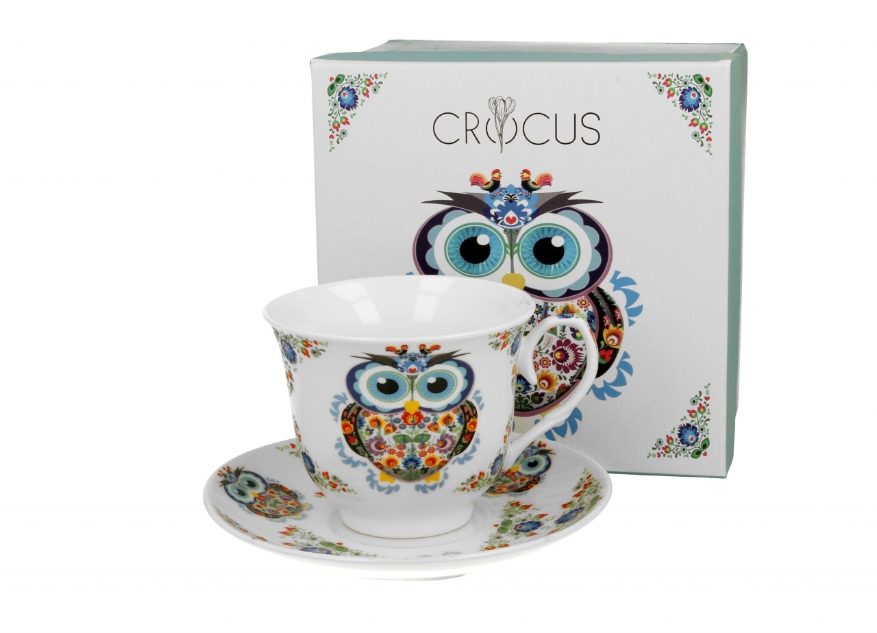 Šálek s podšálkem ETNO SOWA, součást série CROCUS, je vyroben z porcelánu New Bone China, který se vyznačuje elegantní a přírodní krémově bílou barvou s jemným leskem a také výjimečnou odolností.Řada zdobená okouzlujícím motivem sovy z etnických výřezů. Intenzivní barvy na dokonale bílém pozadí...