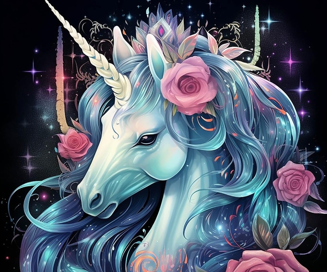 Diamantové malování 30x40cm Jednorožec a růže