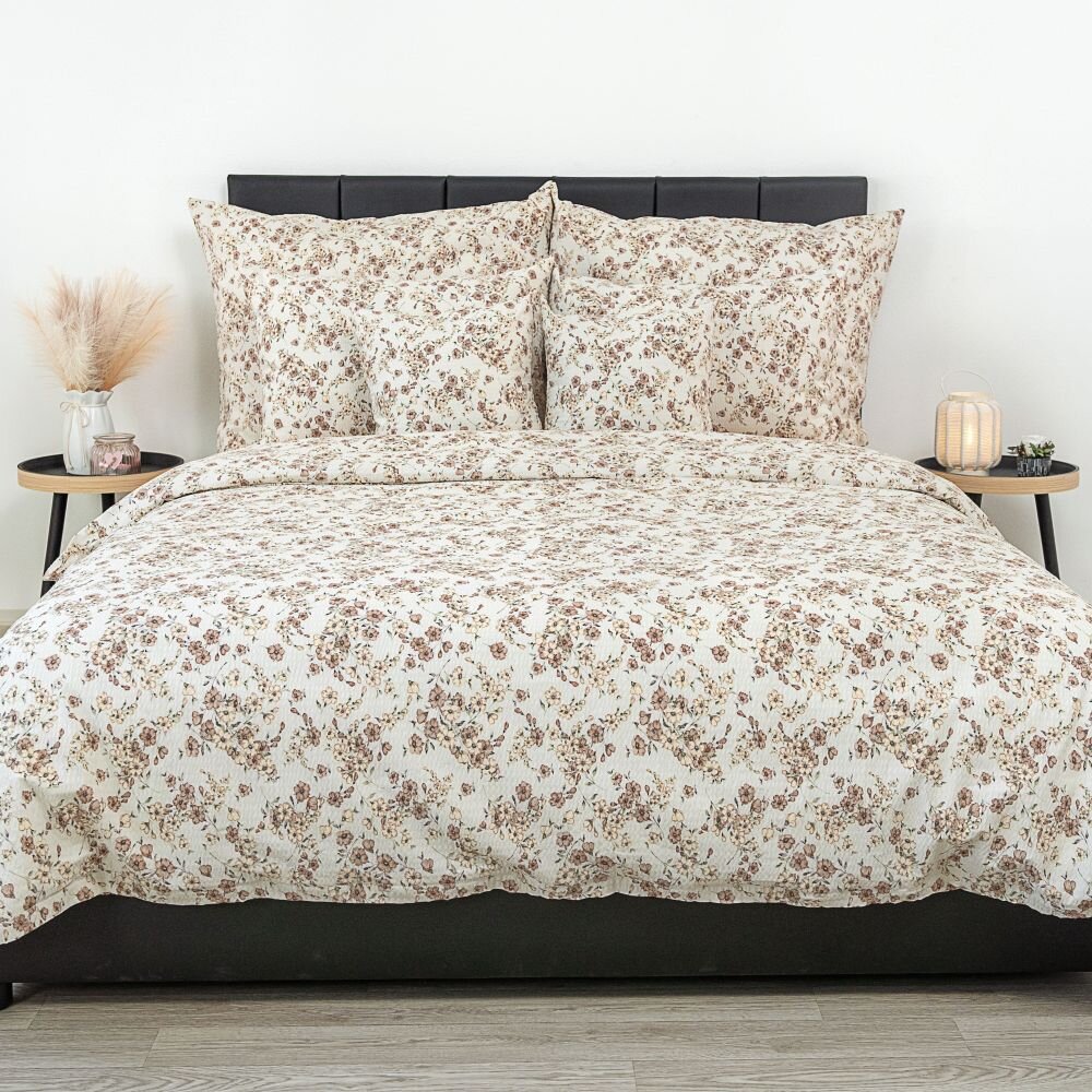 Francouzské krepové povlečení 200x200, 70x90cm Kvítí béžové
