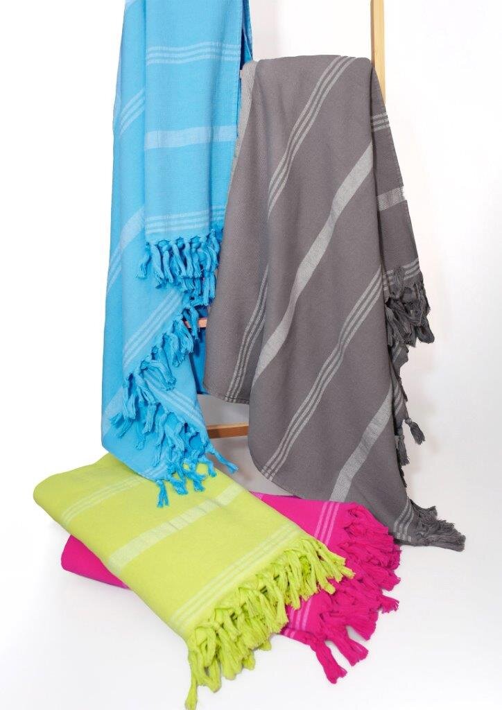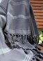 RĘCZNIK PLAŻOWY Z FRĘDZLAMI RELAX 90X170 cm POPIEL W PASKI