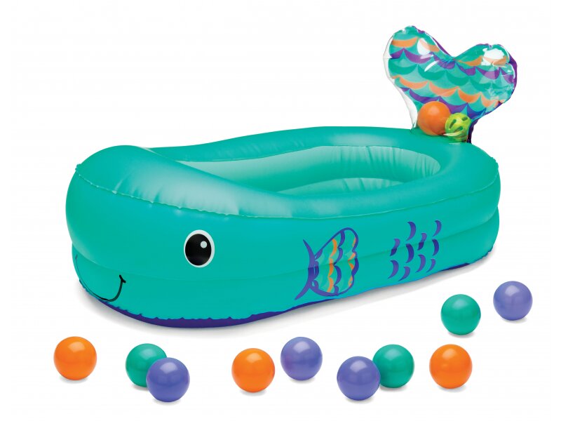 Nafukovací vaničku v podobě velryby využijete doma i na cestách. Teplotní senzor ve vaničce vám pomůže hlídat optimální teplotu pro koupání, která by měla být v rozmezí 32,2°C a 37,8°C. Při tomto optimálním rozmezí teploty vody se senzor zabarví. Vanička má otvor pro snadné vypuštění vody. Snadno...