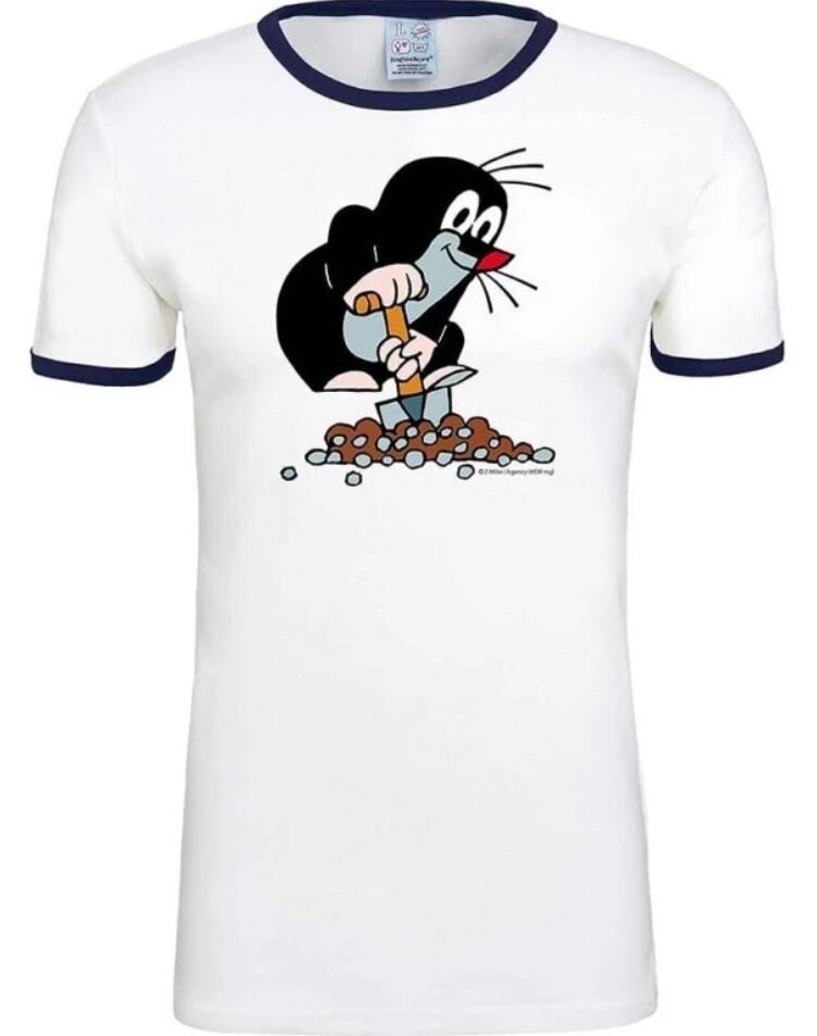Oficiální produkt - pánské tričko z katalogu výrobků s grafikou a licencí populárního kresleného seriálu The Little Mole (Krteček).Zboží je legálně licencováno a prodáváno se souhlasem vlastníků licenčních práv.Bavlněné bílé tričko s modrým lemováním s grafikou Krtečka s rýčem na kopečku. Tričko...