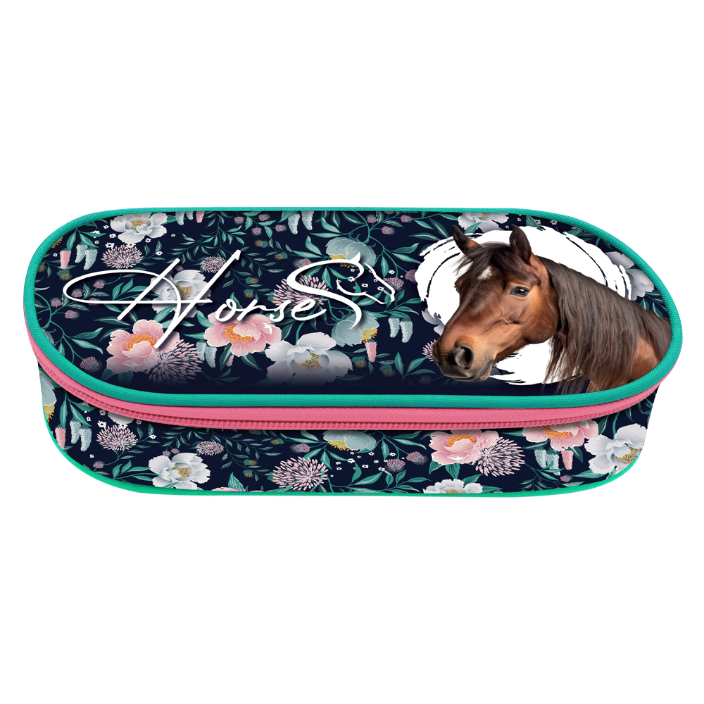 Pojemne jednorozpinane etui/piórnik o owalnym kształcie zawiera:
