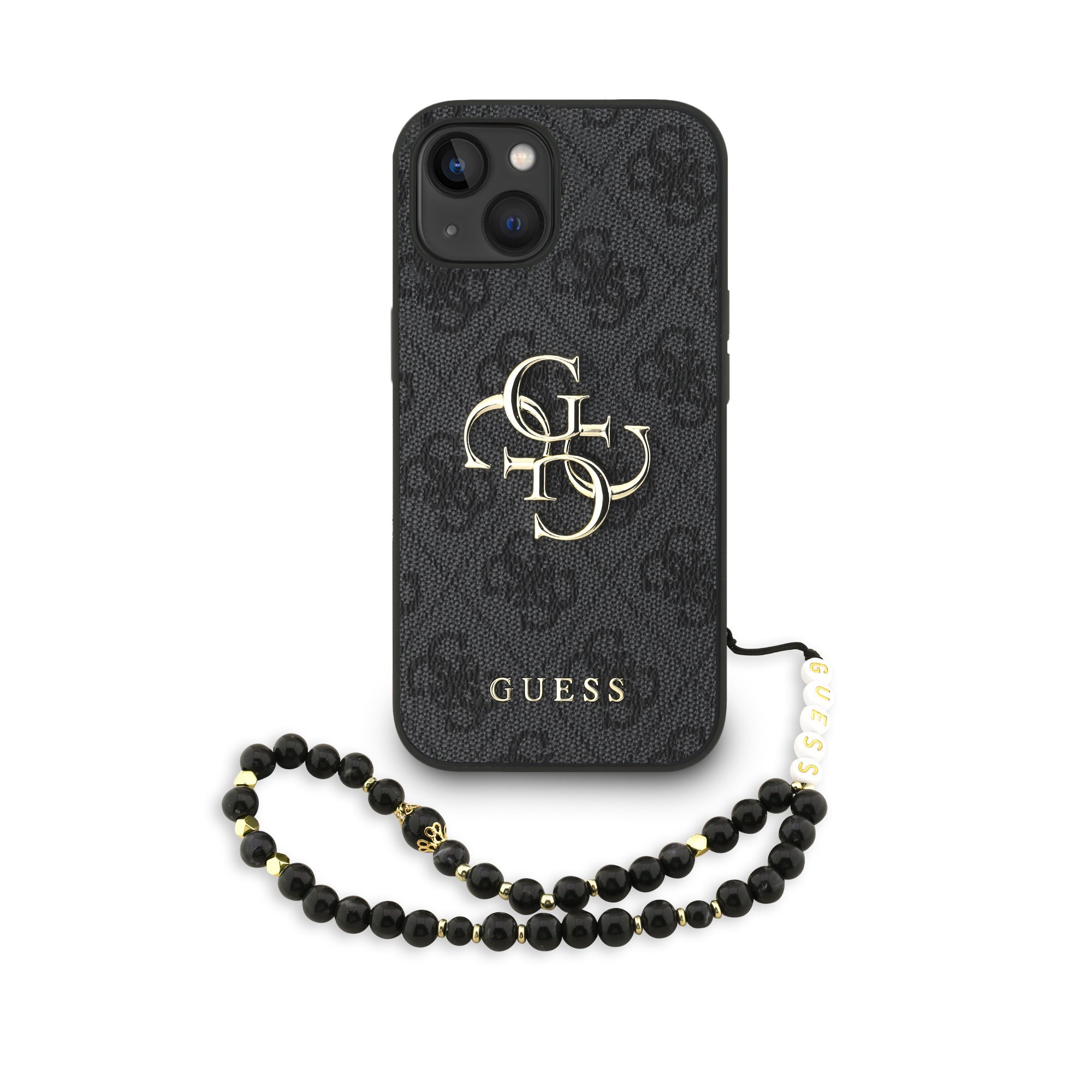 Guess PU 4G Metal Logo Strap Zadní Kryt pro iPhone 15 Black