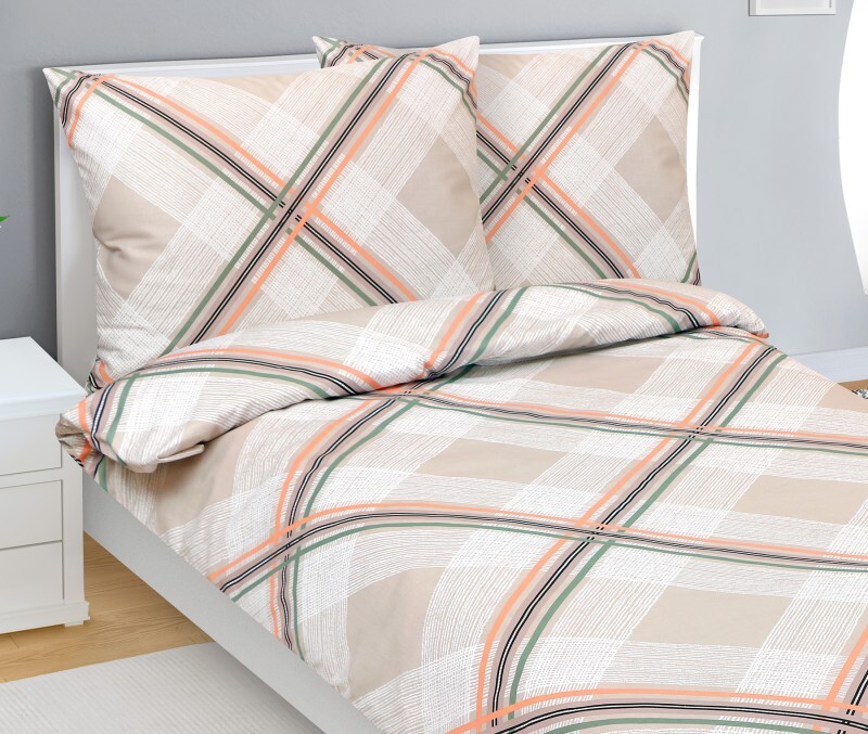 Povlečení bavlněný satén - Béžová,Lososová,Zelená - 140x200, 70x90 cm