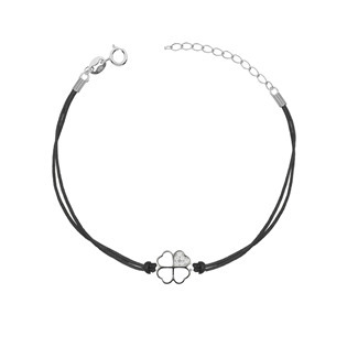 Textilní náramek je dekorovaný přívěškem ve tvaru čtyřlístku, který je vyroben ze rhodiovaného stříbra 925/1000 a je zdobený kubickými zirkony čiré barvy.Délka náramku je 16 cm + 3 cm prodloužení. Náramek ani komponenty komponenty neobsahují nikl, náramek je tedy vhodný i pro alergiky.Šperk...
