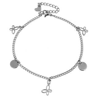 RN1137-ST Ocelový náramek na nohu s přívěšky - motýli