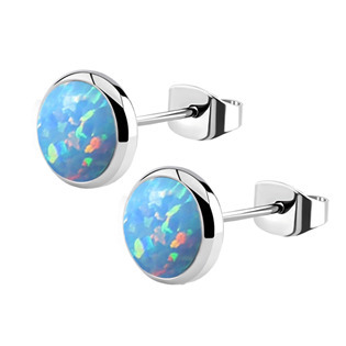 Stalowe kolczyki zdobione syntetycznymi opalami