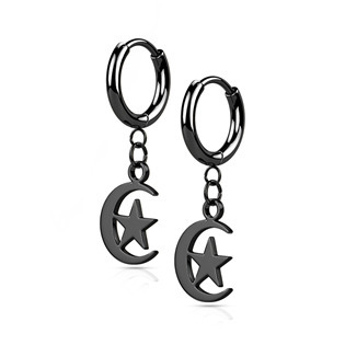 OPN1823-K Černé ocelové náušnice - měsíc s hvězdou