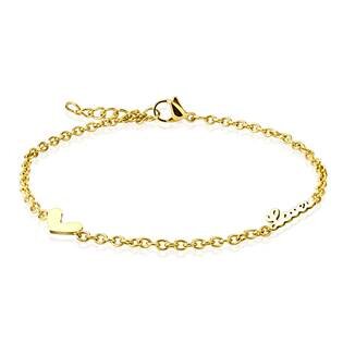 RN1136-GD Dámský zlacený ocelový náramek na nohu - srdce