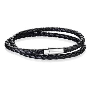NR1204-21 Dvojitý náramek proplétaný černý, délka 21,5 cm