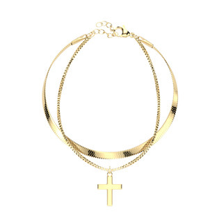 OPA1764-GD Zlacený ocelový náramek s křížem