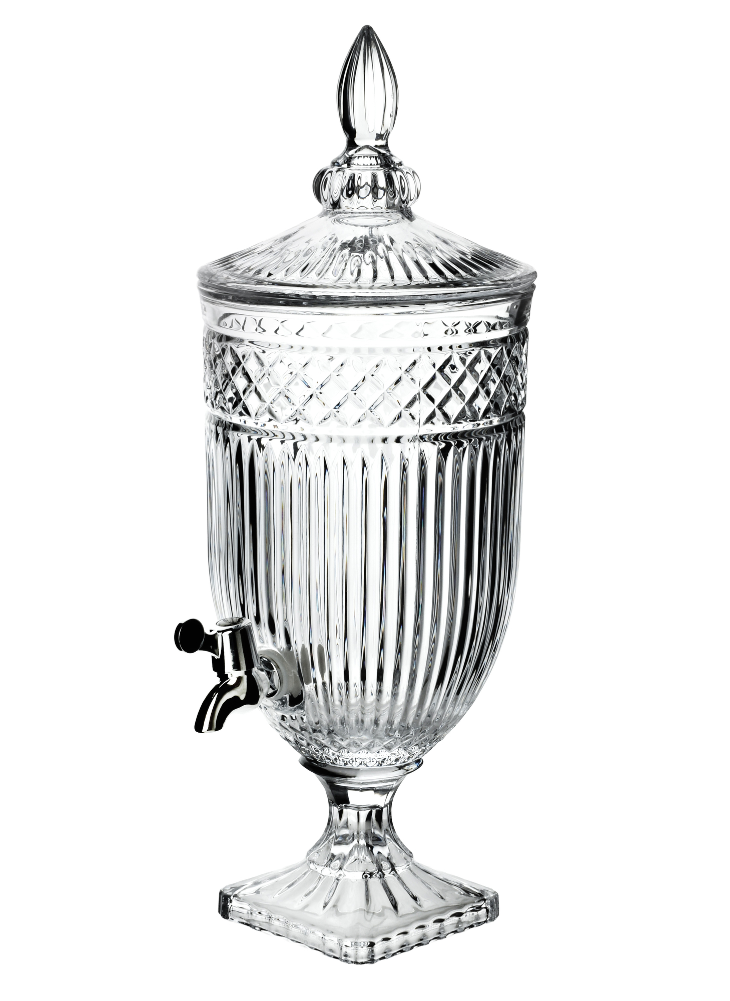Słój z kranikiem MODERN KITCHEN o kryształowej fakturze o pojemności 5L to praktyczne i stylowe rozwiązanie do serwowania napojów podczas spotkań rodzinnych, przyjęć czy codziennego użytku w kuchni. Szklany...