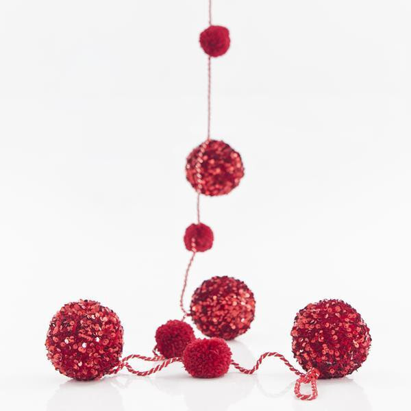 Eurolamp Dekorativní girlanda s červenými bambulemi, 183 cm, 1 ks