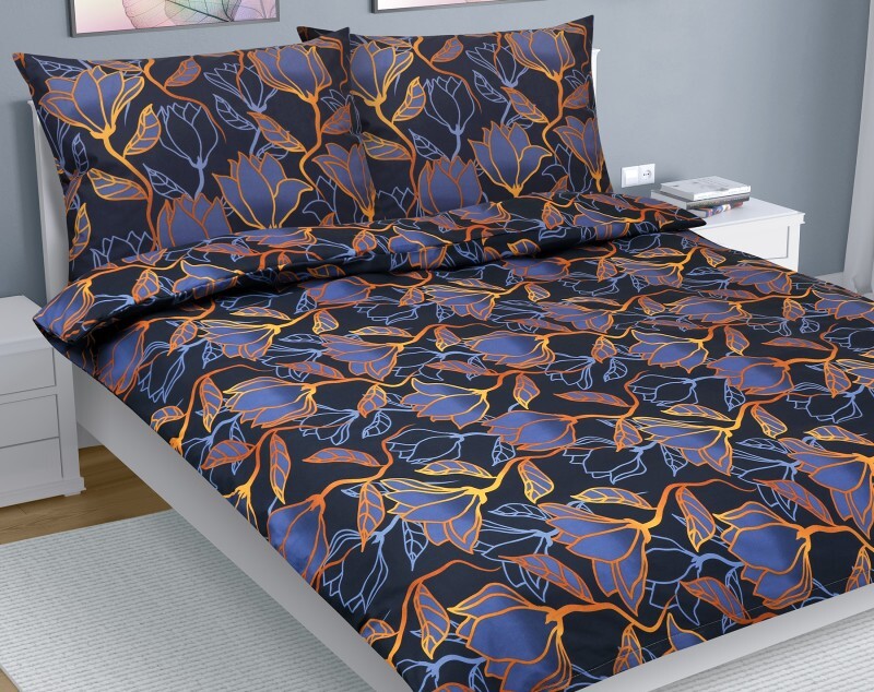 Povlečení bavlna na dvoudeku - Tmavě modrá,Zlatá - 1ks 180x220, 2ks 70x90 cm