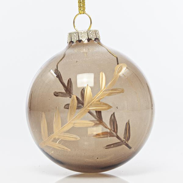 Eurolamp Vánoční ozdoby skleněné hnědé transparentní koule s růžově zlatými lístky, 10 cm, set 4
