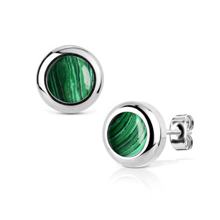 NB007-08 Ocelové náušnice s Malachitem 8mm