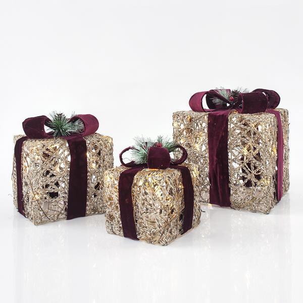 Eurolamp Osvětlené dárkové krabičky, set 3 ks, 15 x 20 x 25 cm