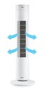 Wentylator DOMO DO8154 zapewnia efektywne chłodzenie dzięki rotorowi tangencjalnemu z przepływem powietrza do 25 m3/min. Kompaktowy i elegancki biały design łatwo wpasuje się w każde nowoczesne wnętrze - w mieszkaniu, domu czy na działce. Wysokość urządzenia to 76 cm, co oszczędza miejsce i jednocześnie znacząco poprawia cyrkulację powietrza dzięki automatycznej oscylacji o kącie 60°.