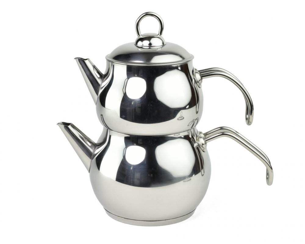 Turecka podwójna çaydanlık ze stali nierdzewnej do przygotowywania tradycyjnej tureckiej herbaty. Niezbędne wyposażenie każdego miłośnika herbaty.