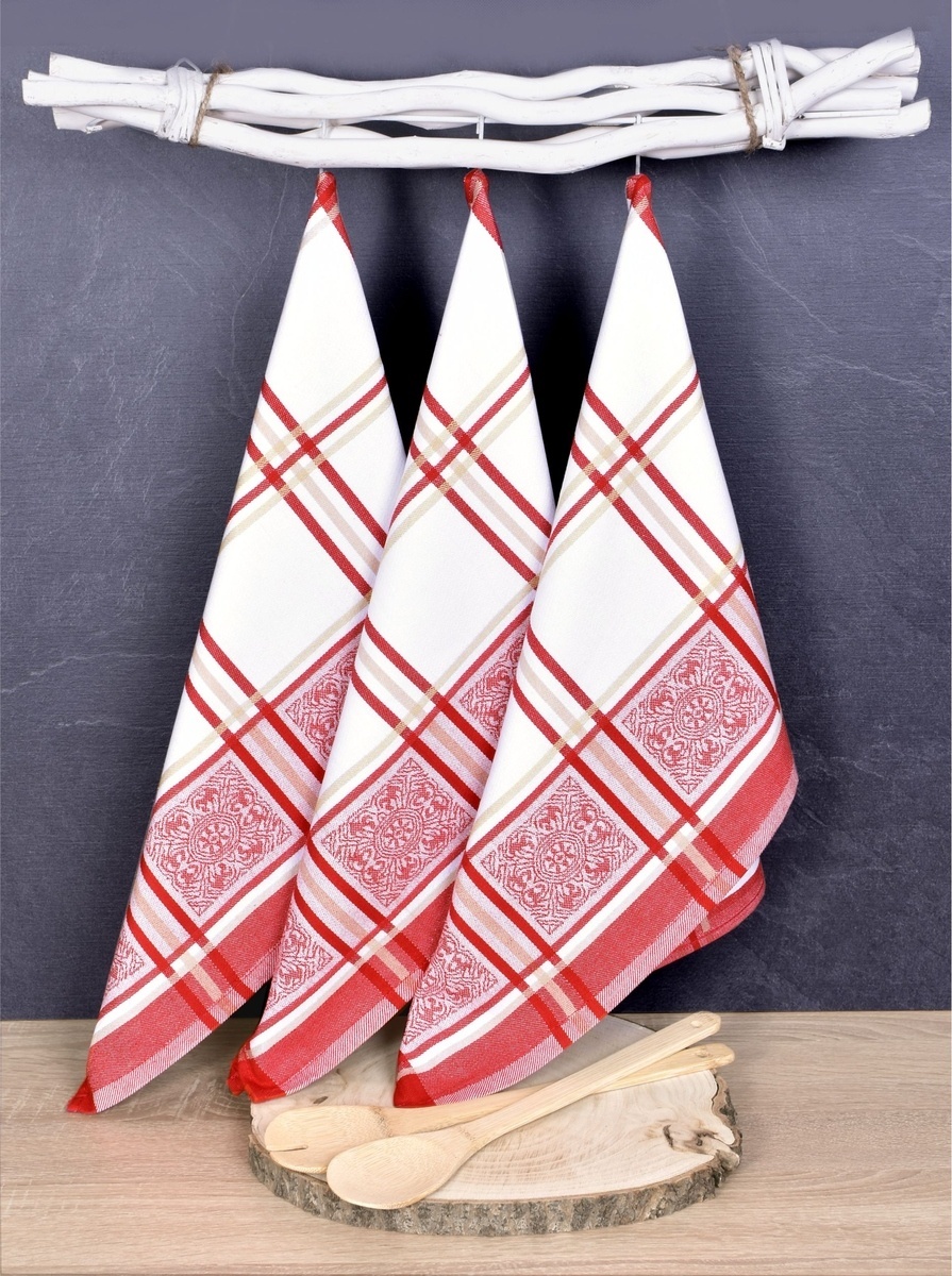 Luxusní kuchyňské utěrky, SOLE RED Egyptská bavlna set 3 ks