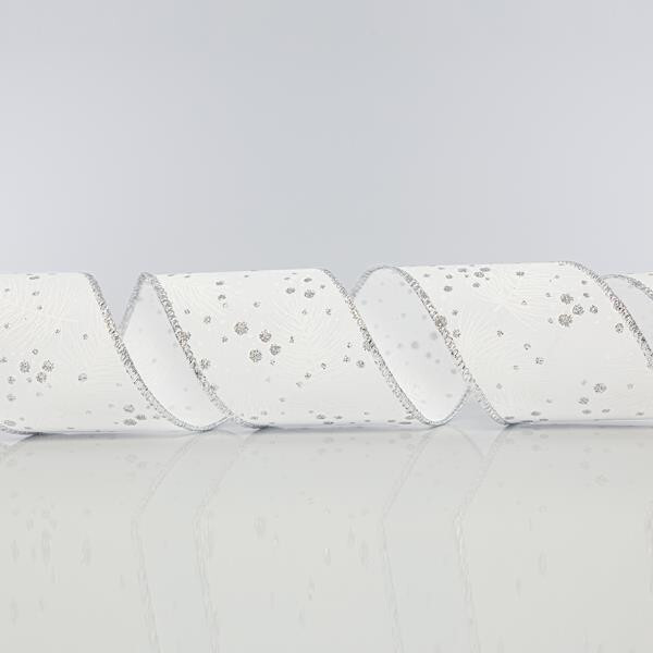 Eurolamp Vánoční dekorace bílá stuha s listy a stříbrnými třpytkami, 6,35 cm, 1 ks