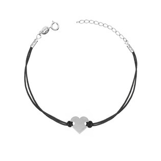 Textilní náramek je dekorovaný přívěškem ve tvaru srdce, který je vyroben ze rhodiovaného stříbra 925/1000