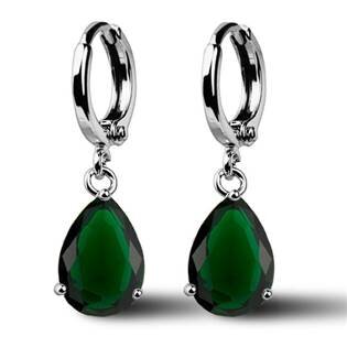 Błyszczące kolczyki ze szmaragdowozielonymi kubicznymi cyrkoniami w kształcie kropli